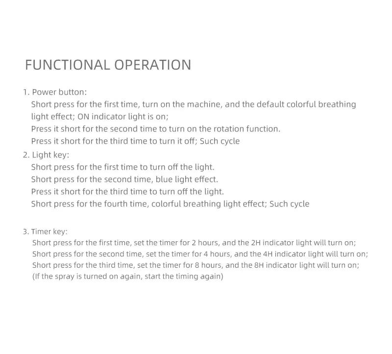 2, It is recommended to add tap water. Pure water can not be atomized fully, resulting in a small amount of fog.