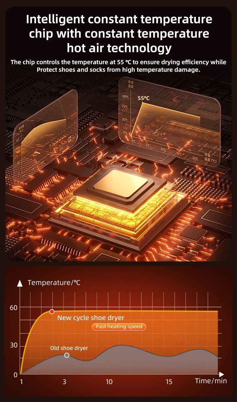The intelligent timer of this dryer provide convenient and efficient drying, ensuring that your shoes receive time and appropriate drying and deodorization.