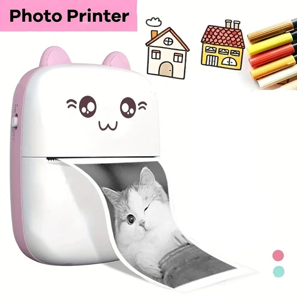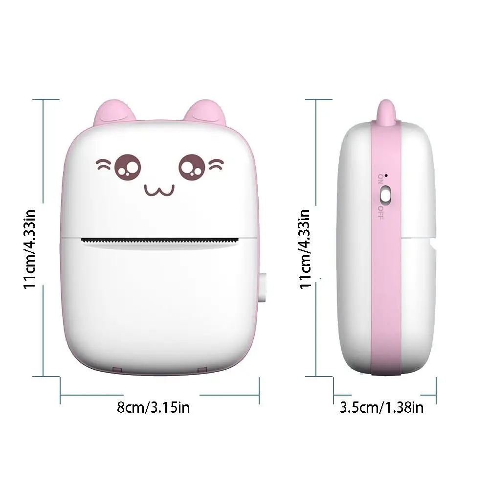 1. **Compact and Portable**: This mini pocket thermal printer features a sleek, cat-shaped design that fits easily into your pocket or bag, making it perfect for on-the-go printing.