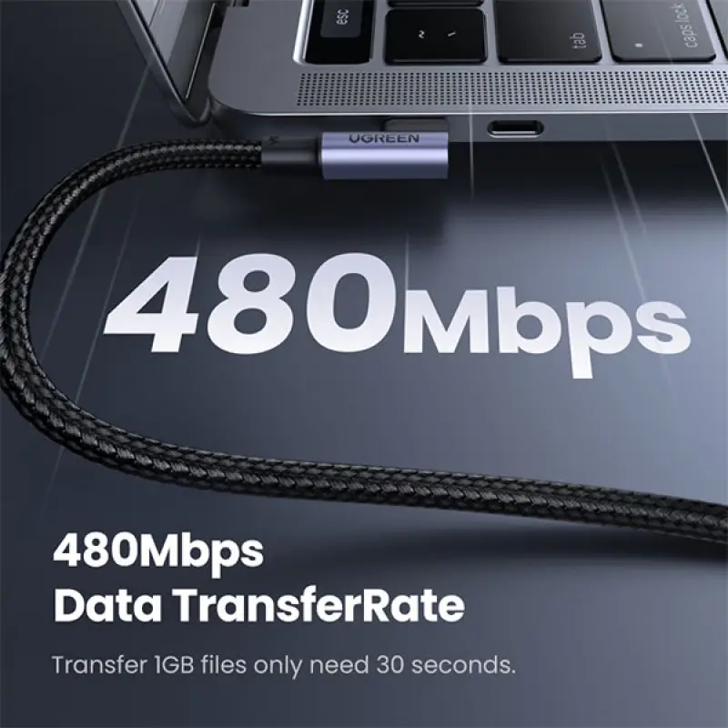 -Warranty: 1-year brand warranty Product OverviewThe UGREEN US334 (70643) USB Type-C to Type-C Cable is an essential accessory for anyone seeking a dependable and efficient charging and data transfer solution. Measuring 1 meter in length, this cable stands out with its ability to deliver up to 100W of power, making it ideal for fast-charging demanding devices like laptops, tablets, and smartphones. Beyond its impressive charging capabilities, it also facilitates data transfers at speeds up to 480Mbps, allowing for quick syncing of large files.