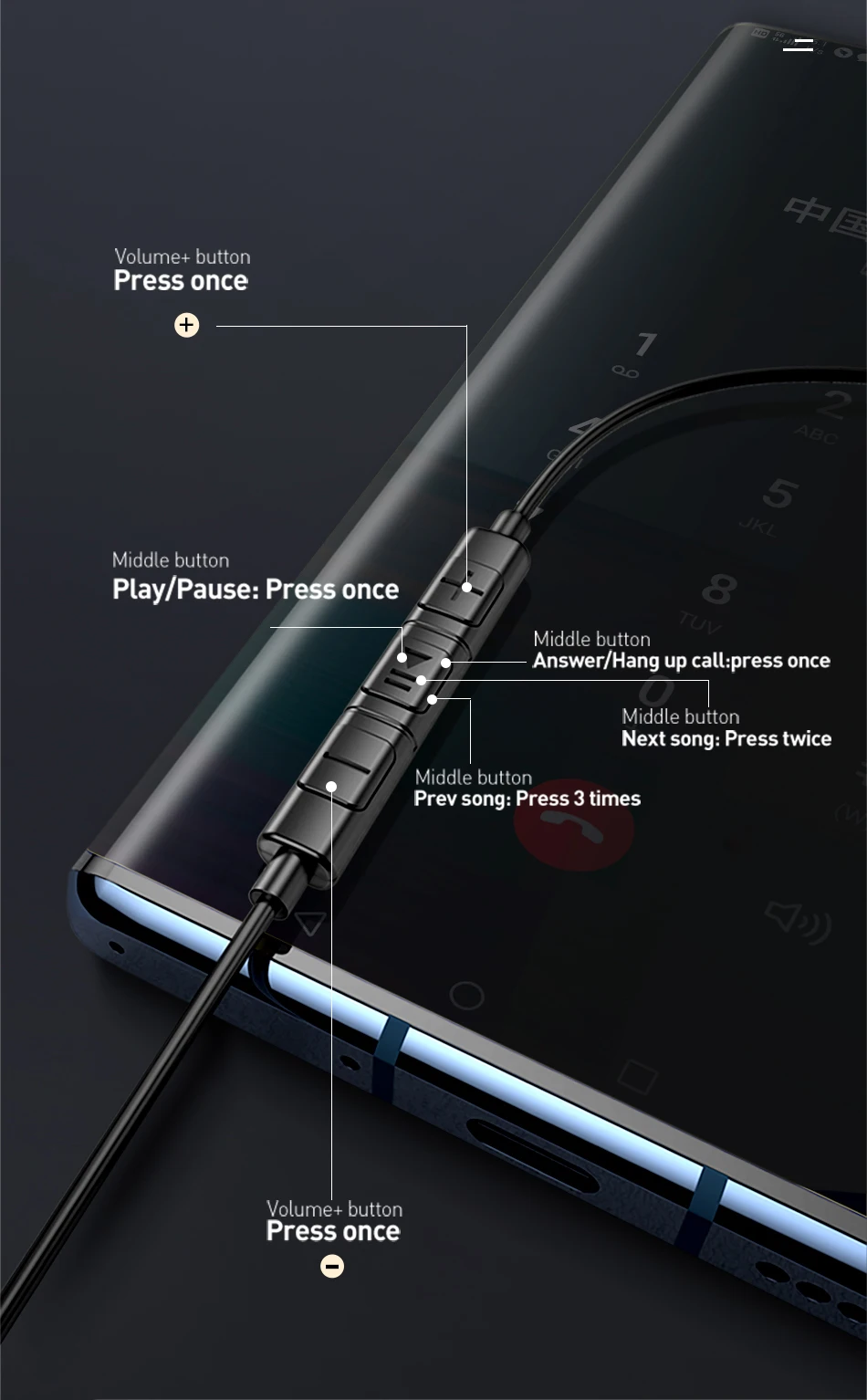 A multi-function button that can be used to control music playback and answer calls