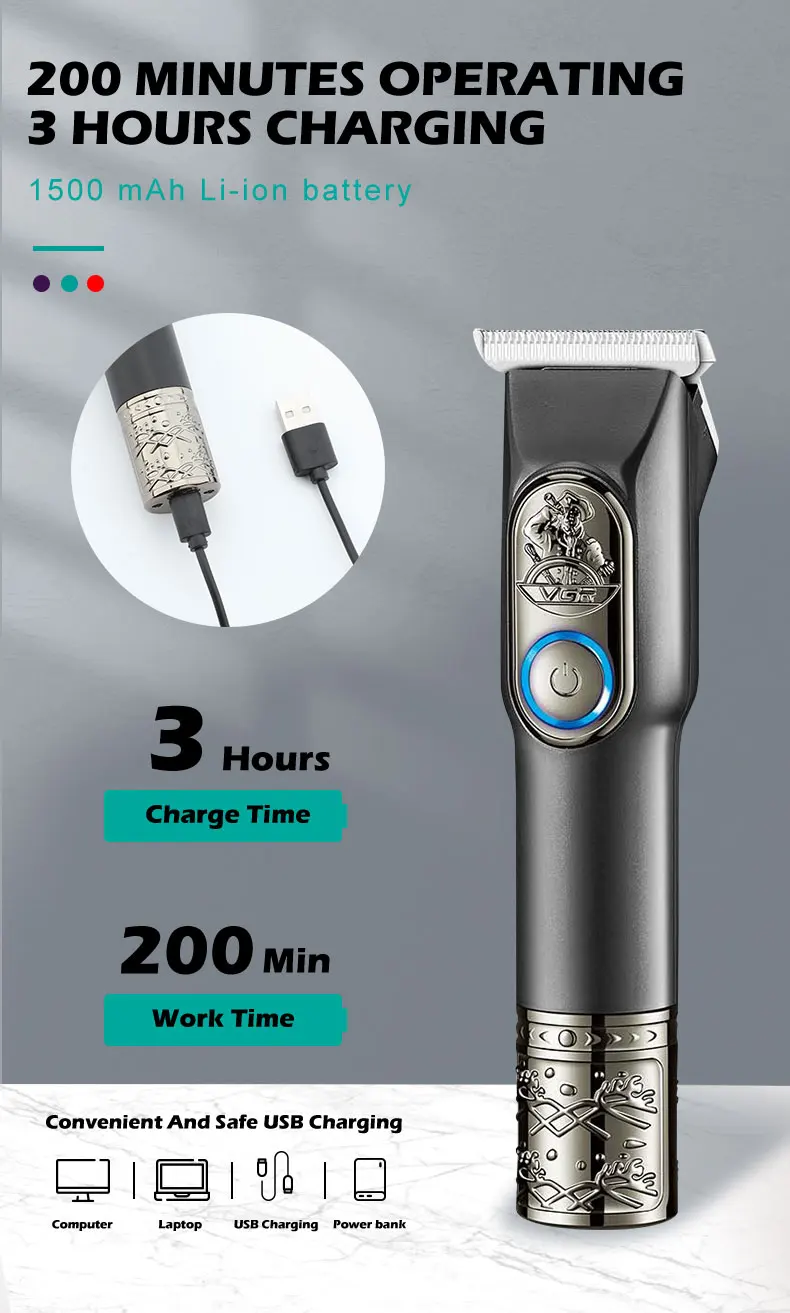 The VGR V-963 Professional Hair Trimmer is a versatile grooming tool designed for precision and convenience. Ideal for personal and professional use, it offers reliable performance with advanced features to suit all your trimming needs.