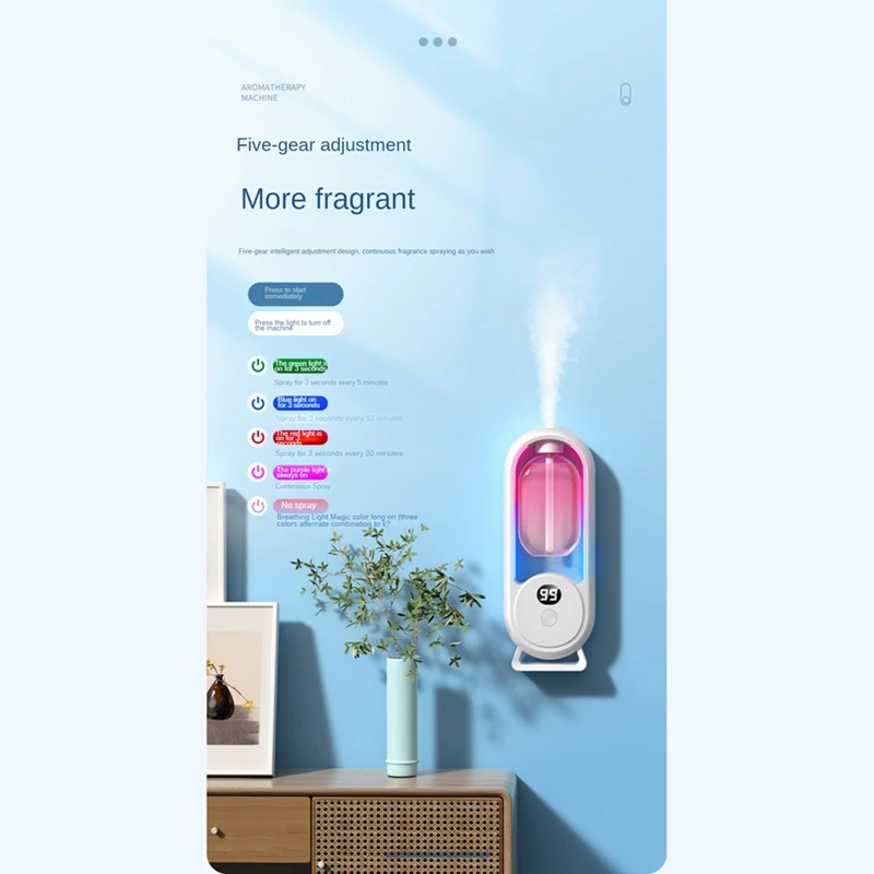 Transform any space into a relaxing sanctuary with this wall-mounted USB rechargeable aromatherapy diffuser. Perfect for homes, offices, spas, yoga studios, and bedrooms, it delivers long-lasting fragrance with quiet operation and a sleek design.