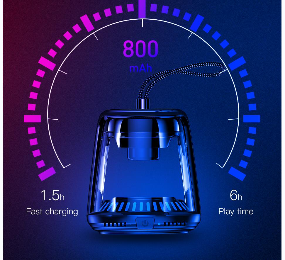 Rechargeable Wireless Speaker Battery : – Charge your portable speaker via USB-C cable (included). 800mAh capacity Li-Ion battery provides up to 6-8 hours of battery life per charge