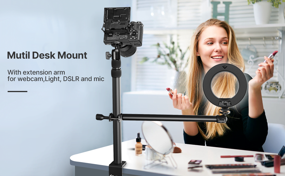 The Ulanzi VIJIM DSLR desk mounts with 18.3 to 48.8 in. super long adjustable range, and 3-section telescopic pole adjustability for cameras/lights/webcam etc.