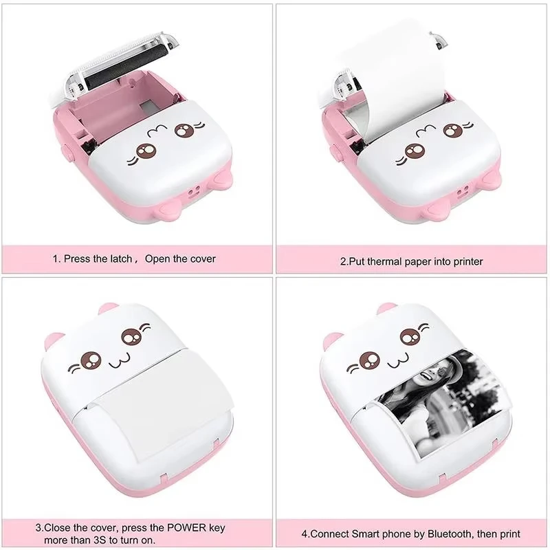 1. **Compact and Portable**: This mini pocket thermal printer features a sleek, cat-shaped design that fits easily into your pocket or bag, making it perfect for on-the-go printing.