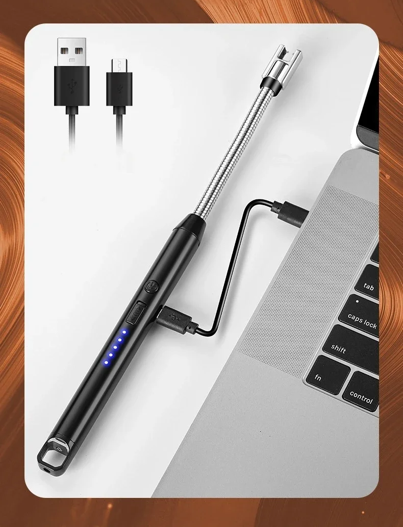 This USB rechargeable arc lighter is designed for safe, efficient, and eco-friendly ignition. Powered by a lithium-ion battery, it delivers a high-voltage electric arc that lights candles, stoves, grills, and more without flame or fuel. The flexible neck allows easy access to hard-to-reach places, while the built-in safety lock and auto shut-off features ensure safe usage. Ideal for indoor and outdoor use, this lighter combines modern technology with practical design.